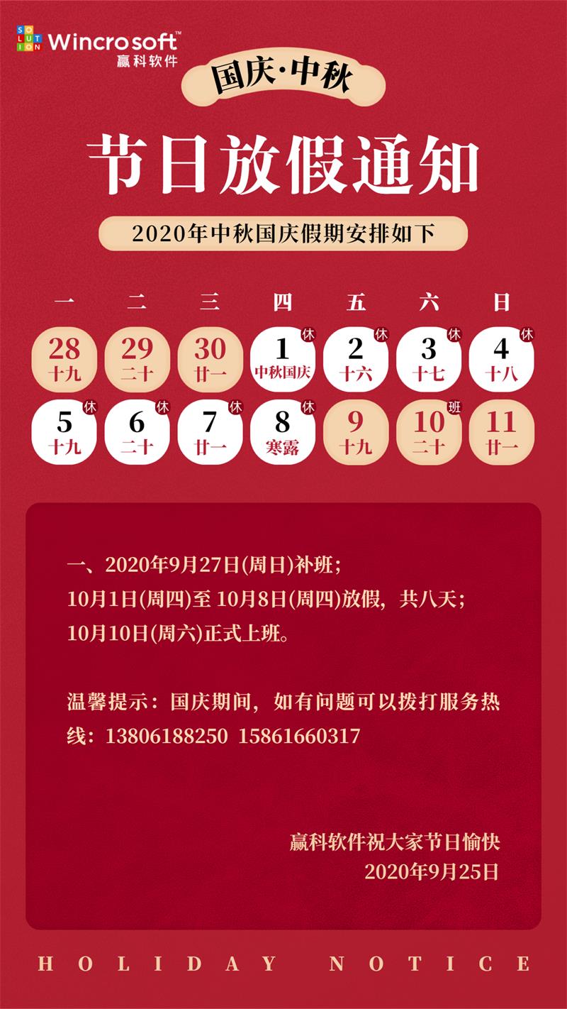 2020年中秋國慶赢科放(fàng)假通知